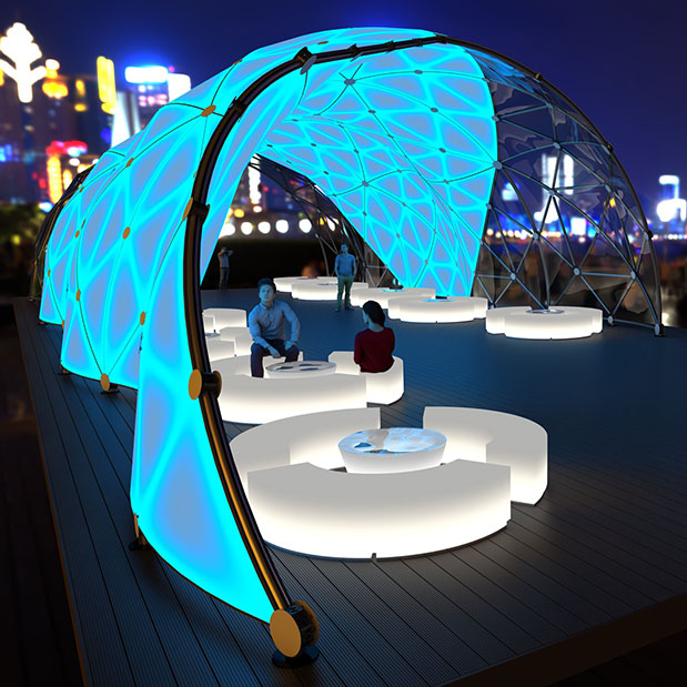 The new outdoor technology of INFINITYCONSTevoX inflatable ETFE cushions can be usefull...
